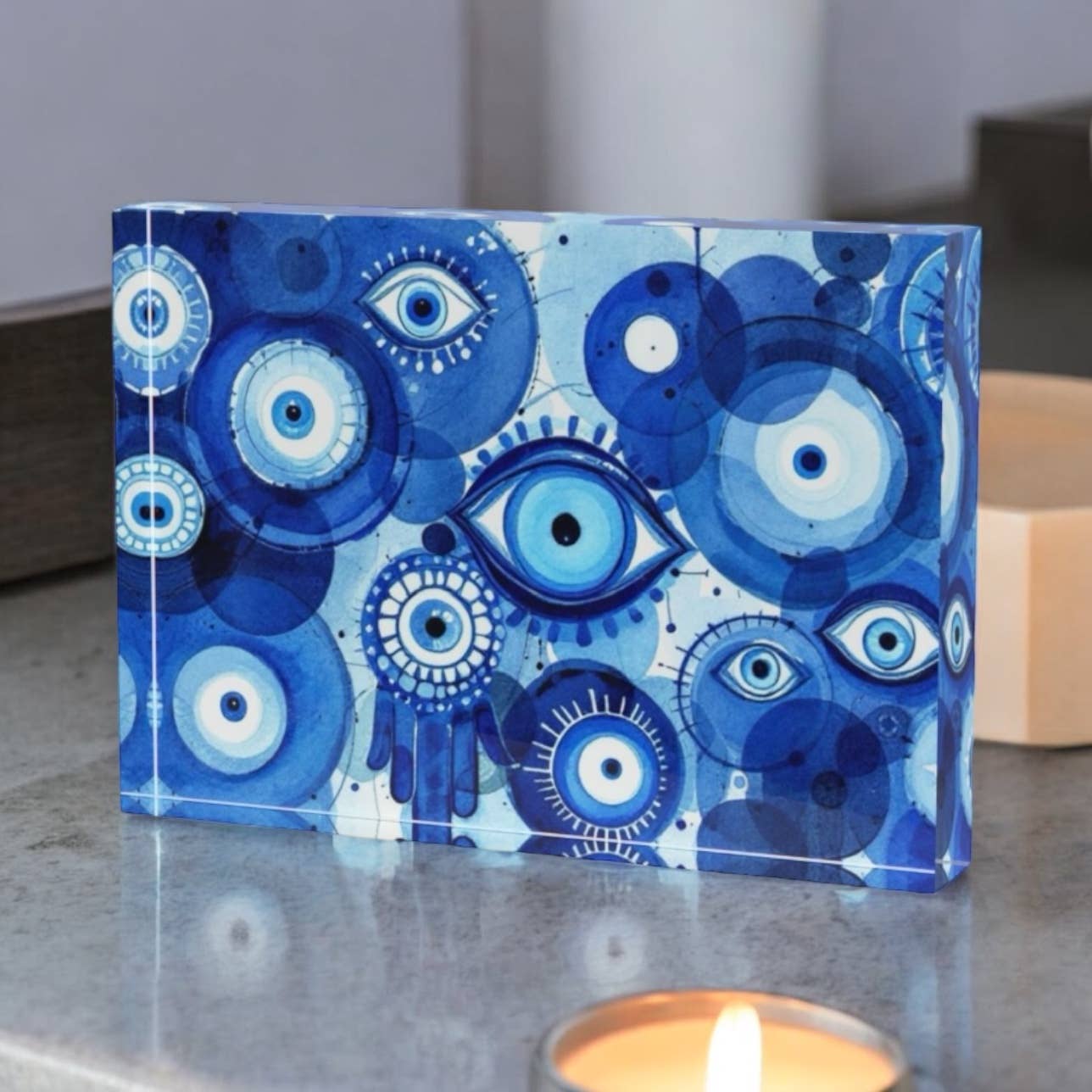 Evil Eye Blues Art Crystal Block Paperweight Decor