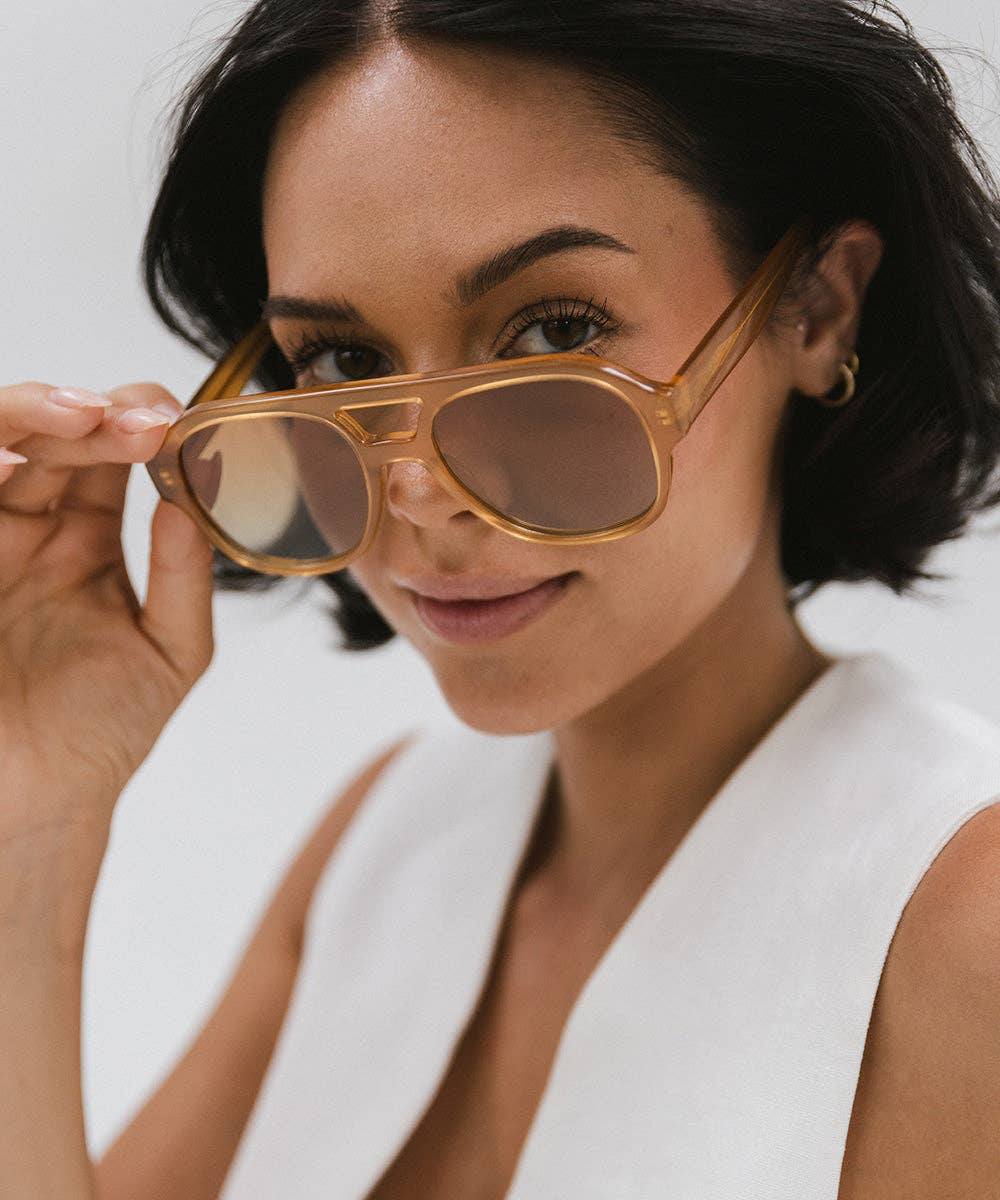 We are taking style cues from the 70's with these retro aviator sunglasses that are this seasons viral look. Featuring an oversized aviator frame + lighter lenses, giving the latest iteration on this iconic style.