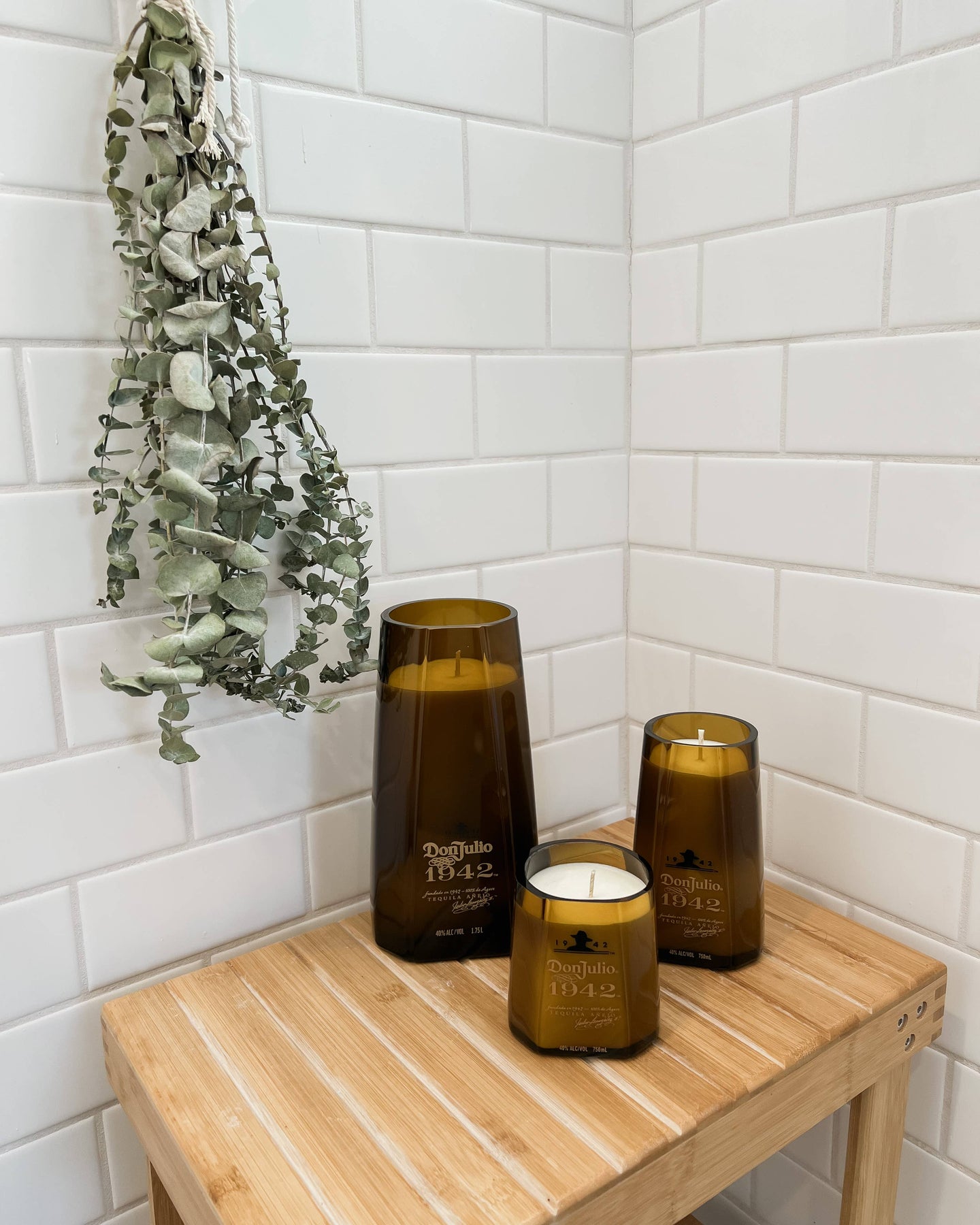 Hand poured and Handmade from locally Recycled* Bottles.