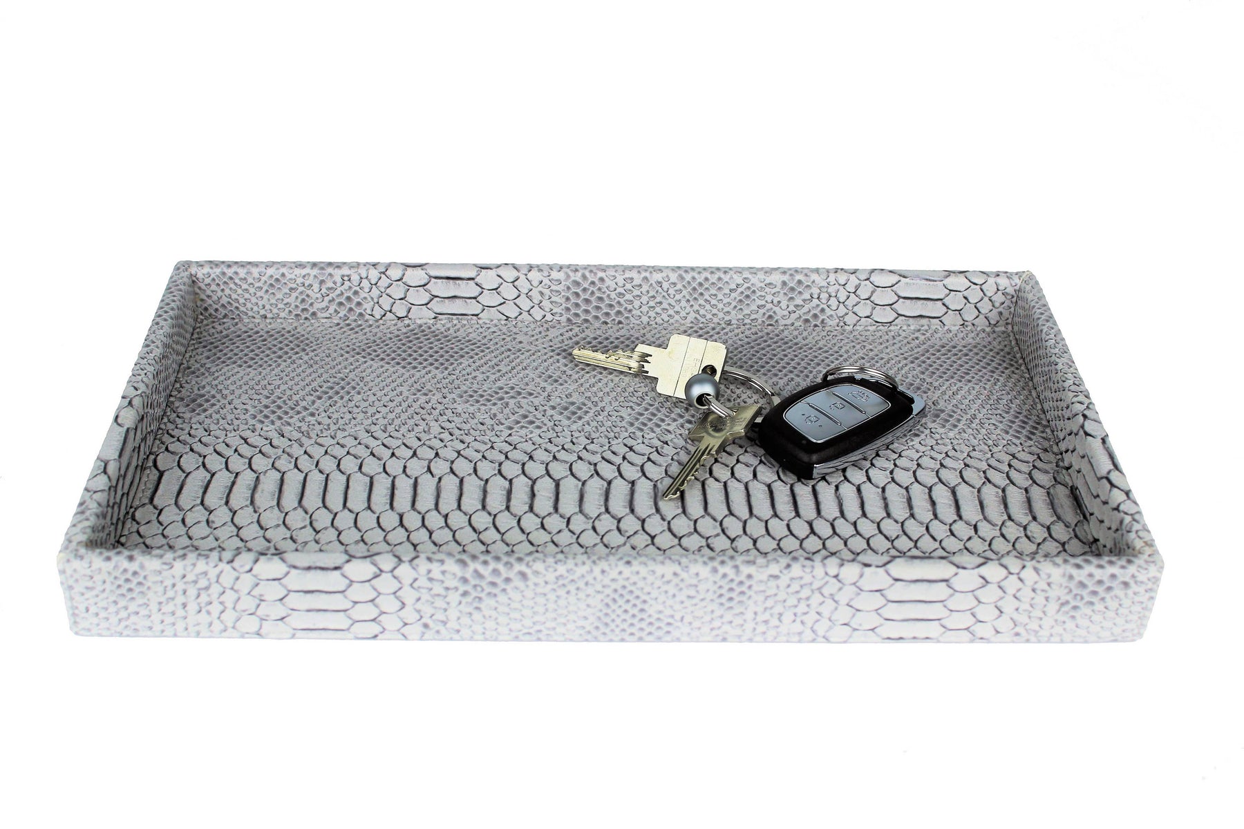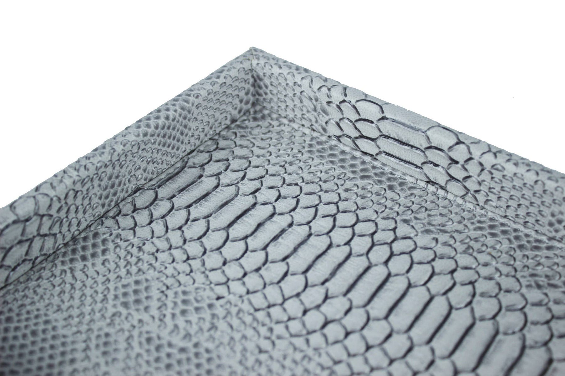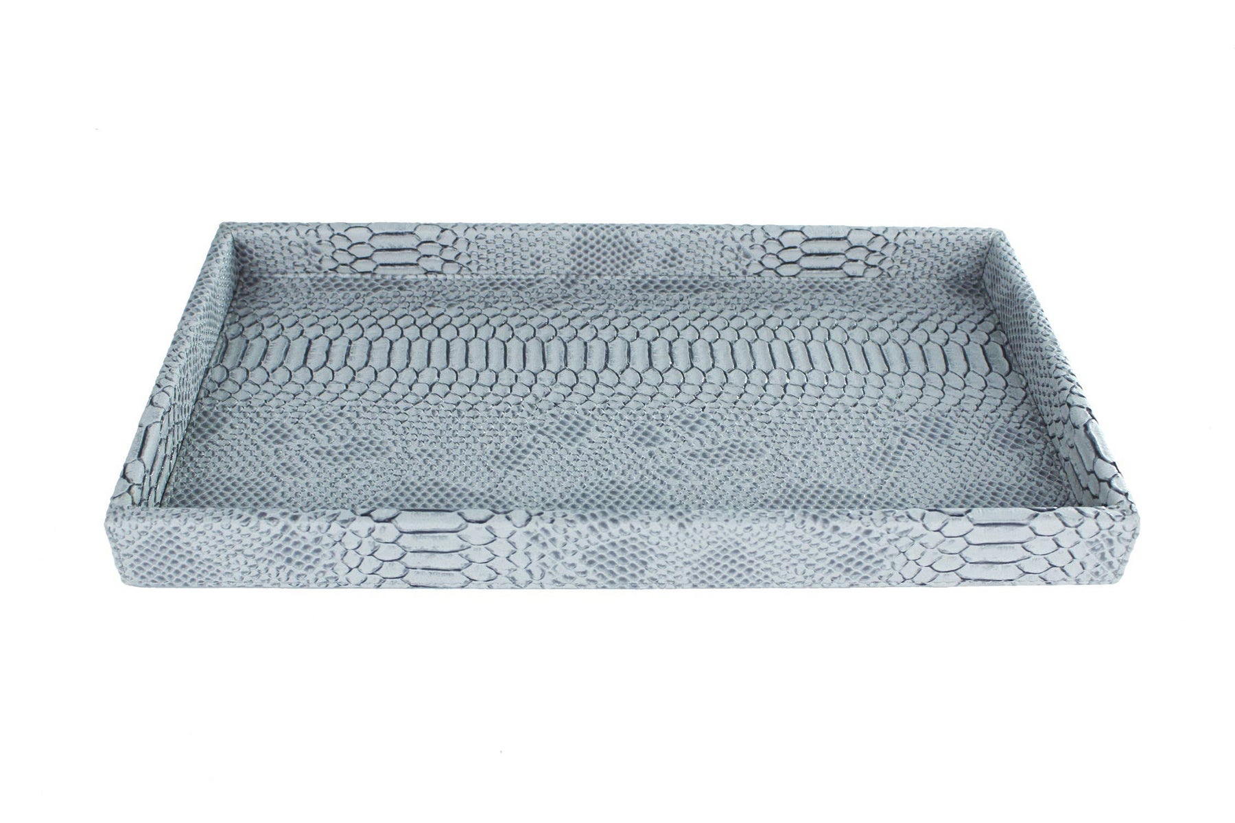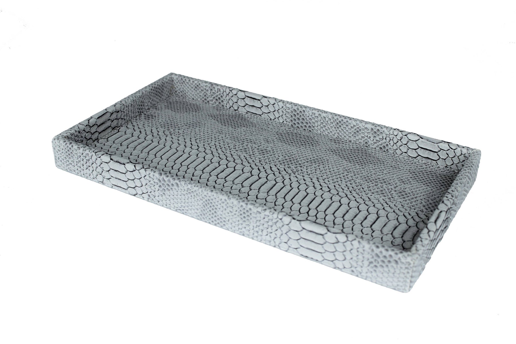tray with low edge in leather reptile print grey